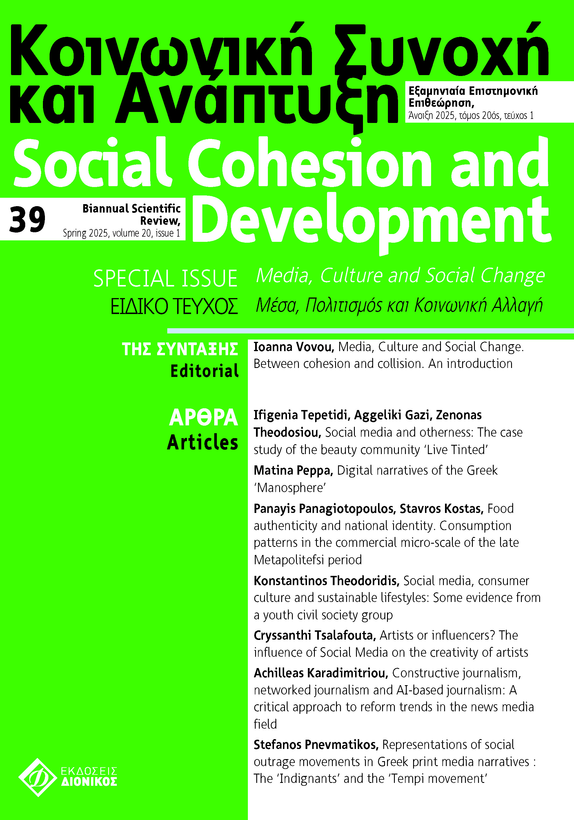 Vol. 20 No. 1 (2025): No 39, SPECIAL ISSUE: Media, Culture and Social Change